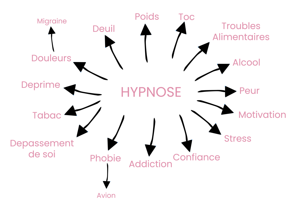 - Se libérer d’une peur, d’une phobie (claustrophobie, agoraphobie, phobie des transports), d’une addiction (tabac, aliments, jeux)